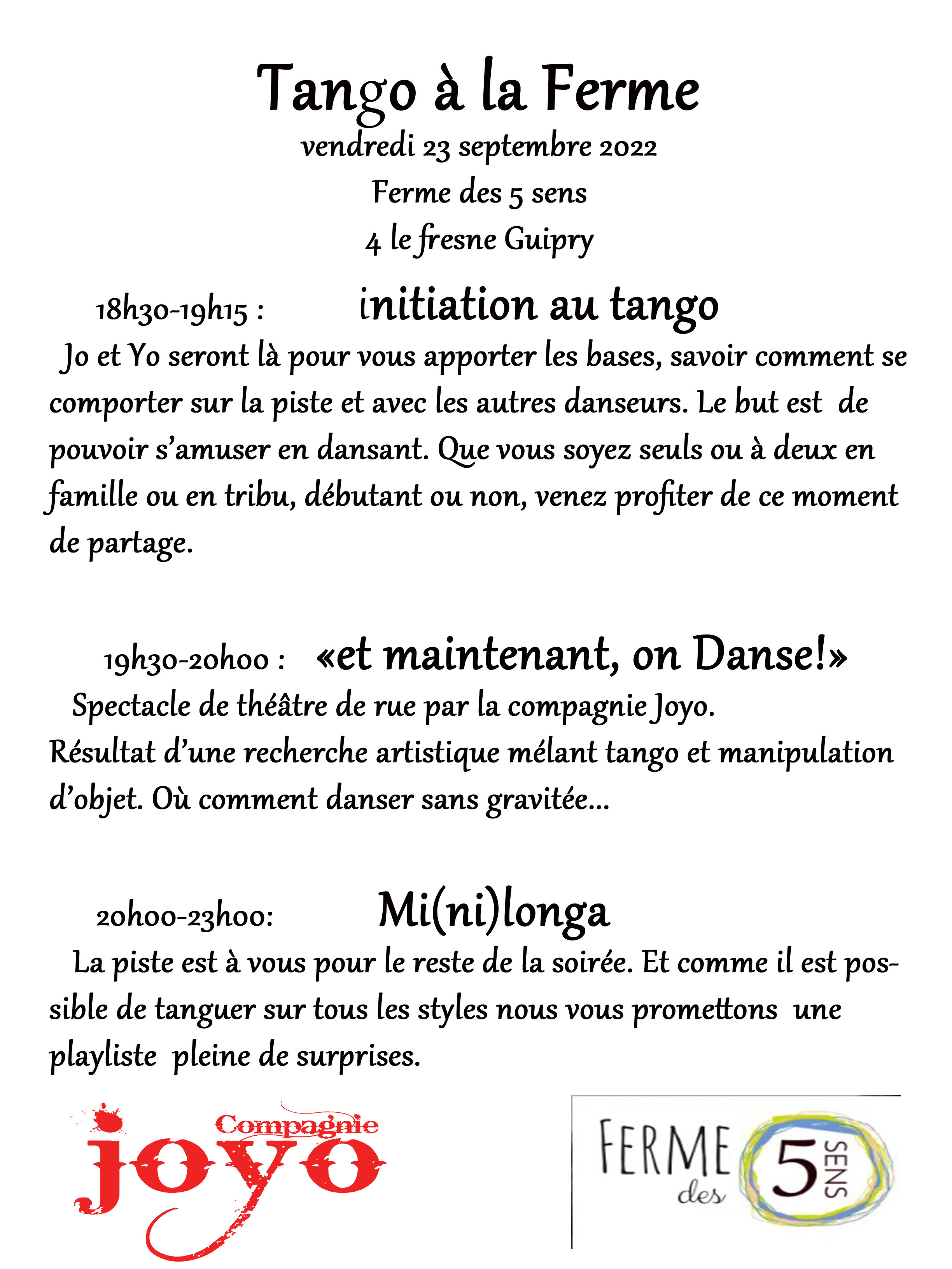 Le 23 septembre, c’est soirée Tango à la ferme avec le Cie Joyo !